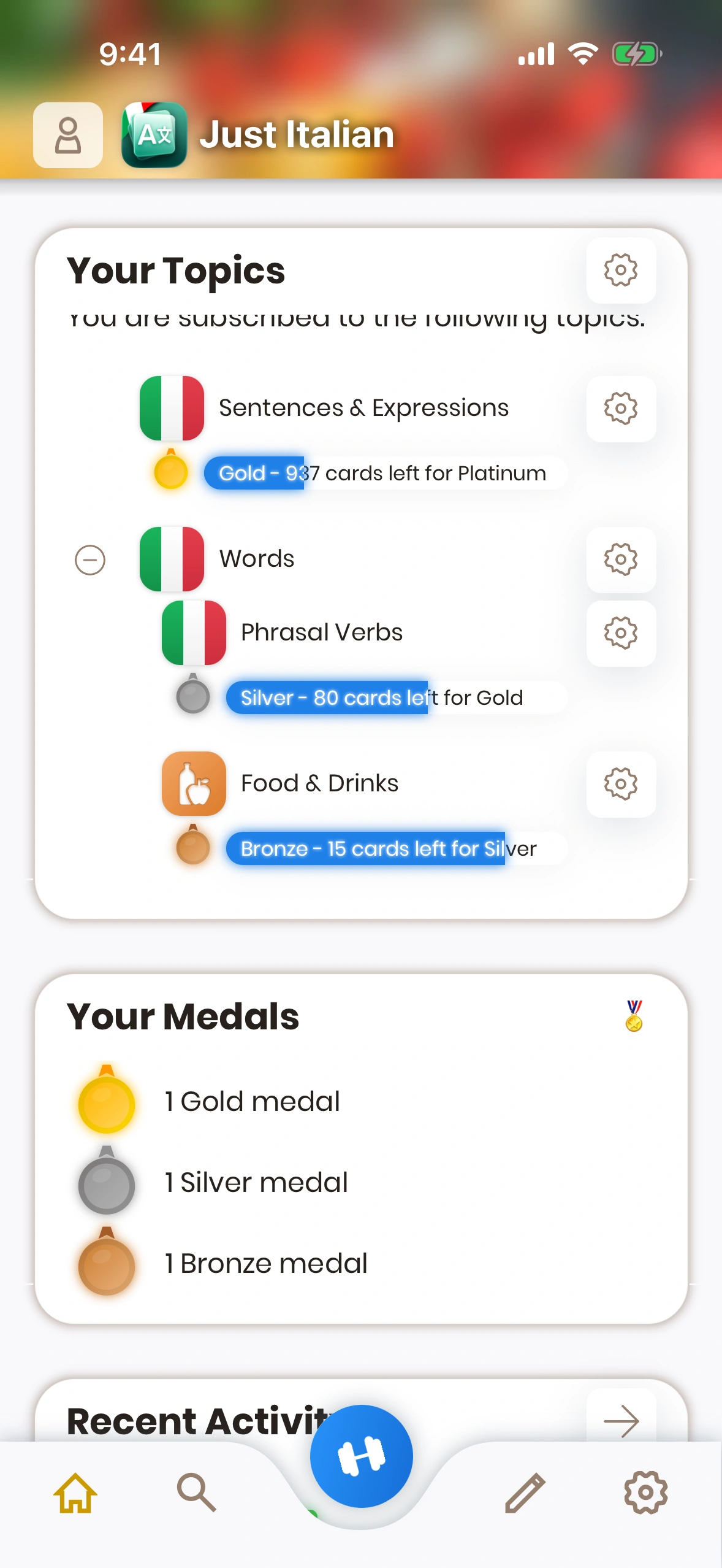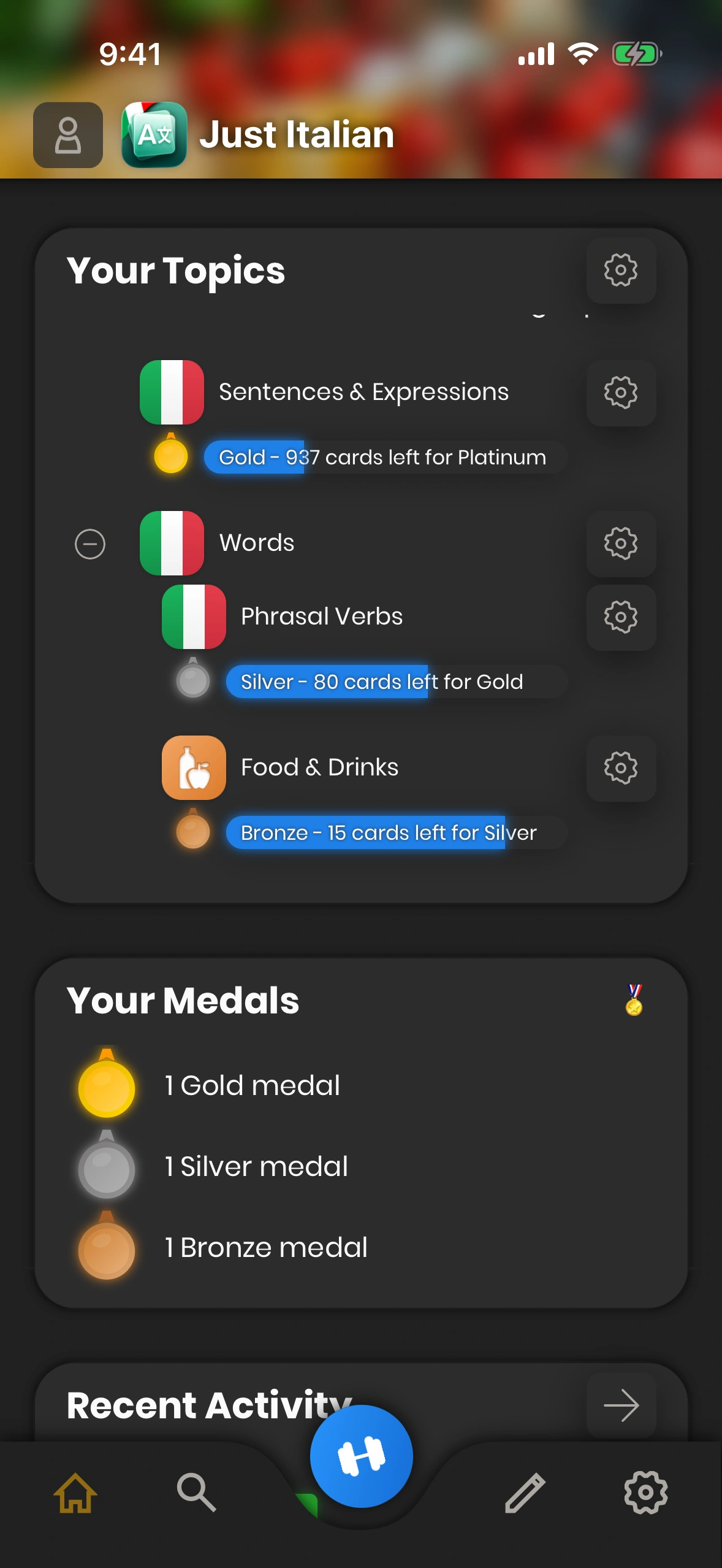 Just Italian lets you create your own cards too - but why not use the +30'000 high-quality cards that come with the app?