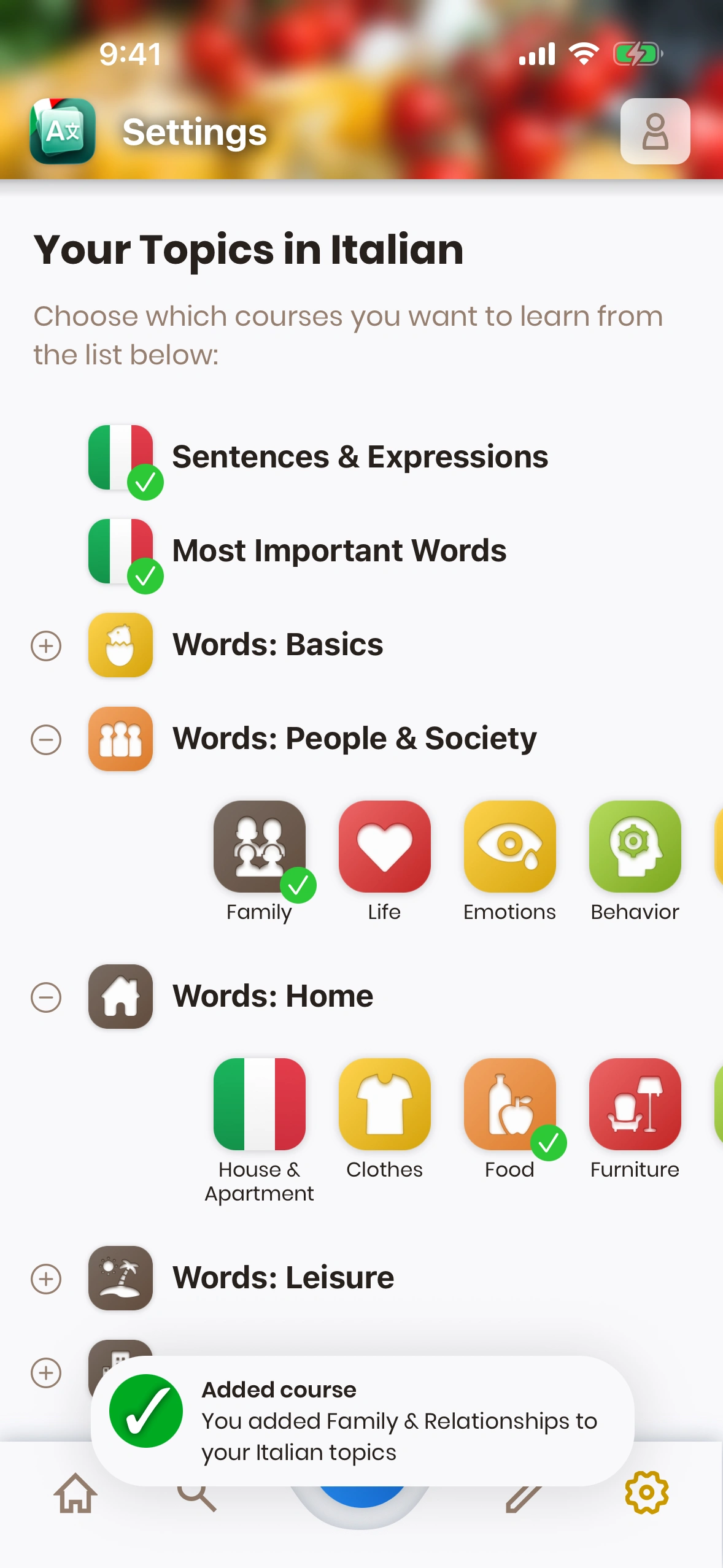 Games and Owls are nice, but if you prefer to make progress, Just Italian is the app for you.