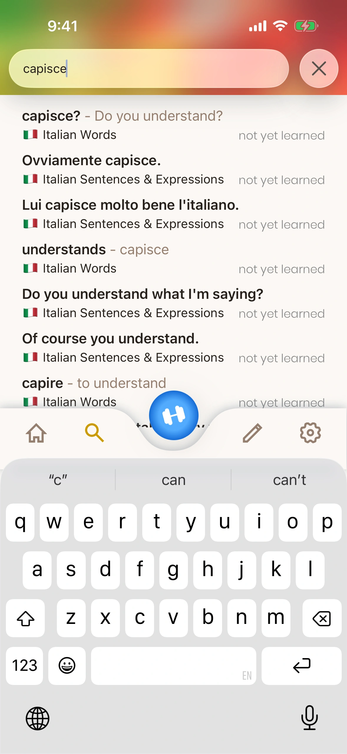 Look up a word you don't know, and add it immediately to your learning queue. Just Italian will make sure you will never forget the word.