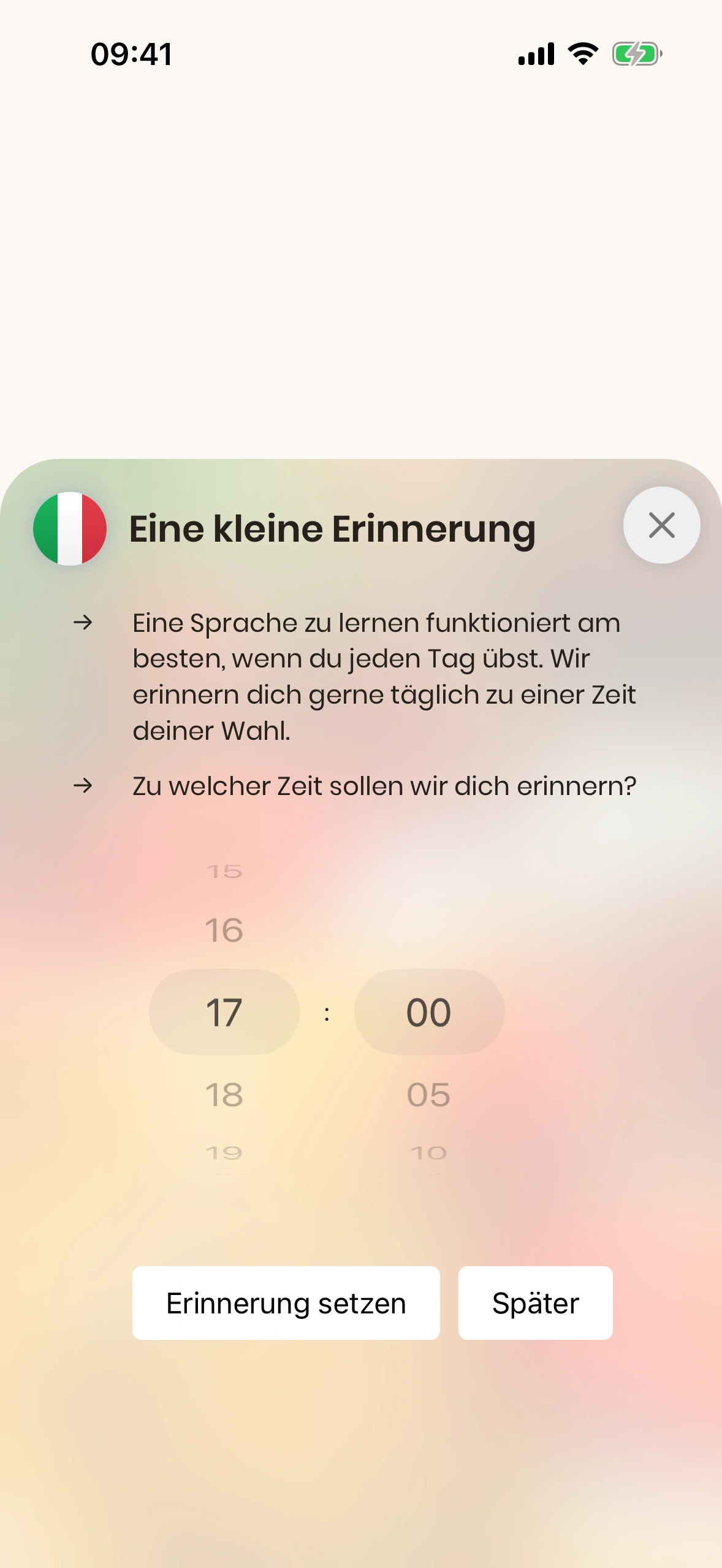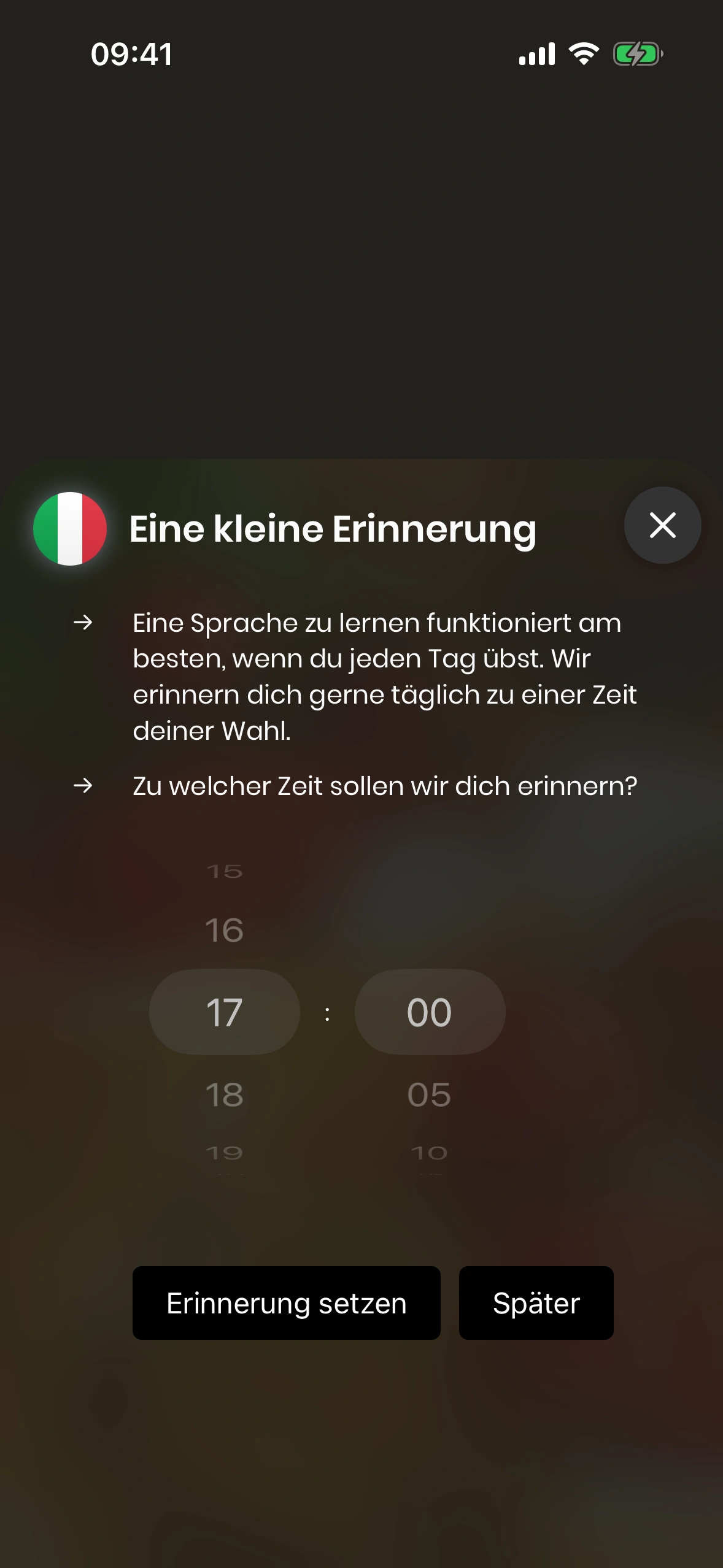 - Im Alltag mit Arbeit, Familie und Freund:innen vergisst man die tägliche Lektion leicht. Darum bietet Just Italian tägliche Erinnerungen. Du kannst sie sowohl im Tutorial als auch in den Einstellungen aktivieren.