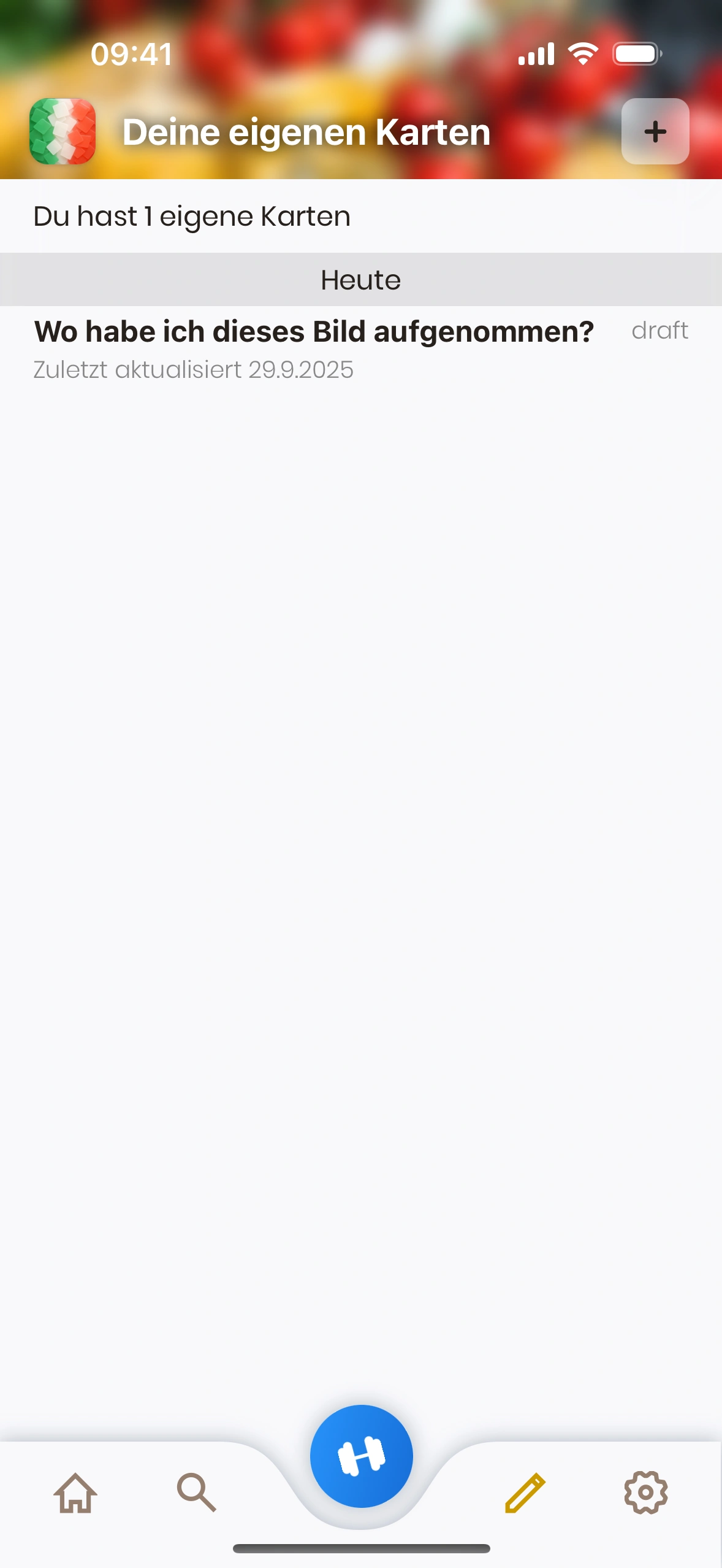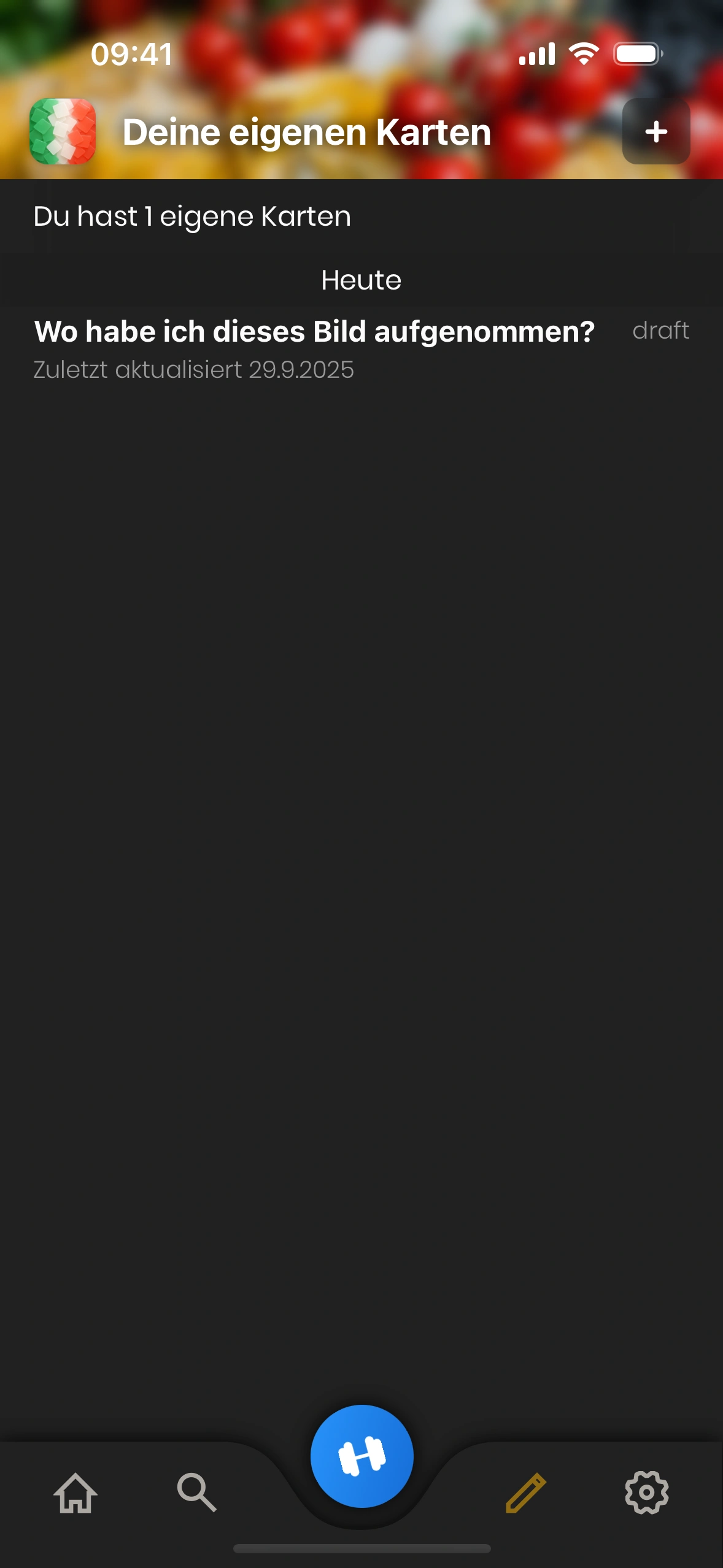 Die Übersicht der eigenen Karten wird angezeigt, wenn du unten in der Tab‑Leiste auf das Stiftsymbol tippst (1.):