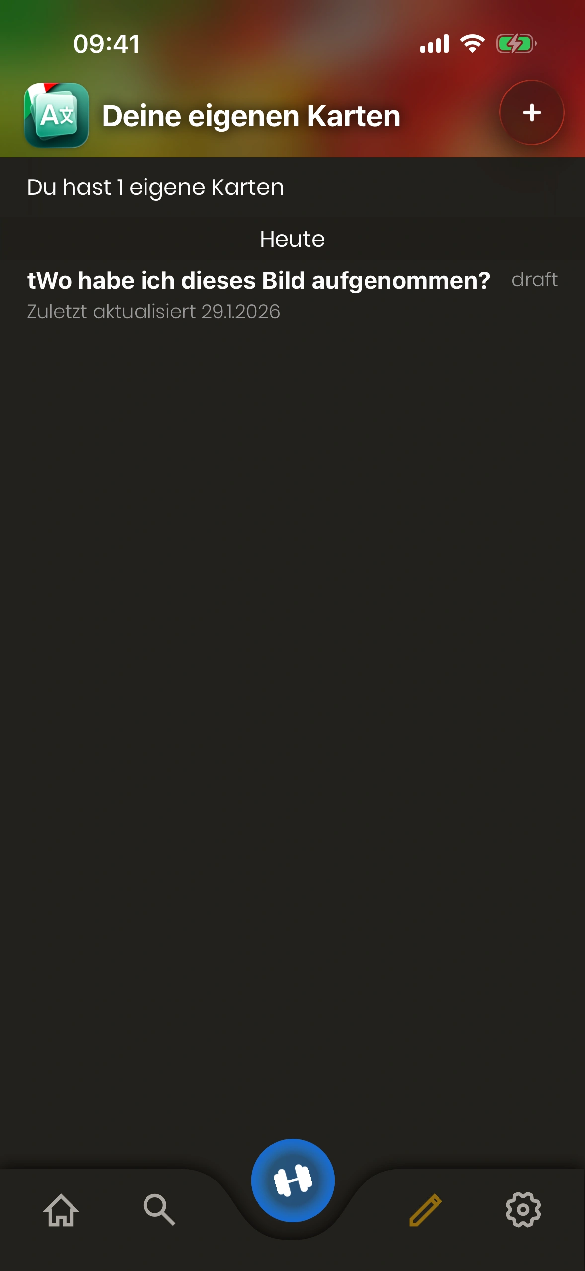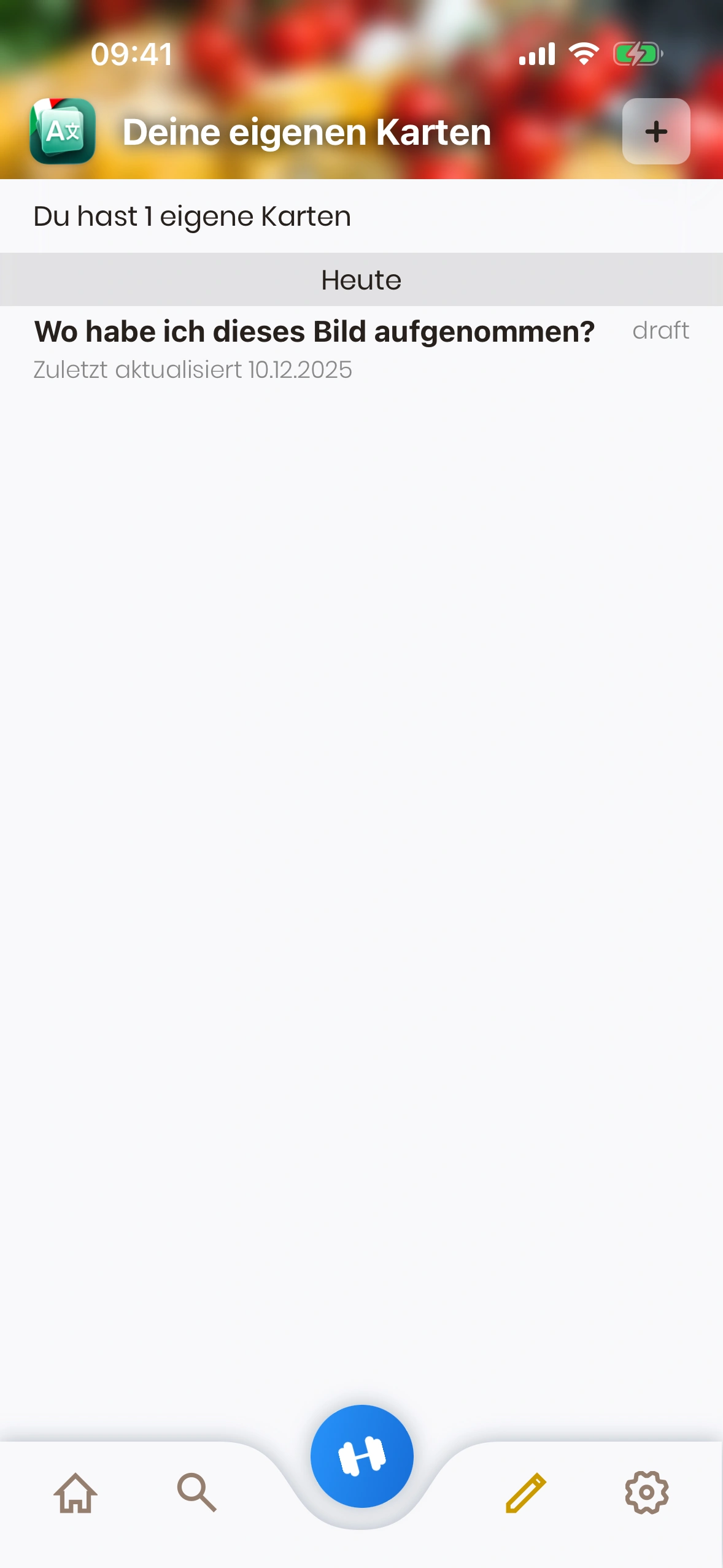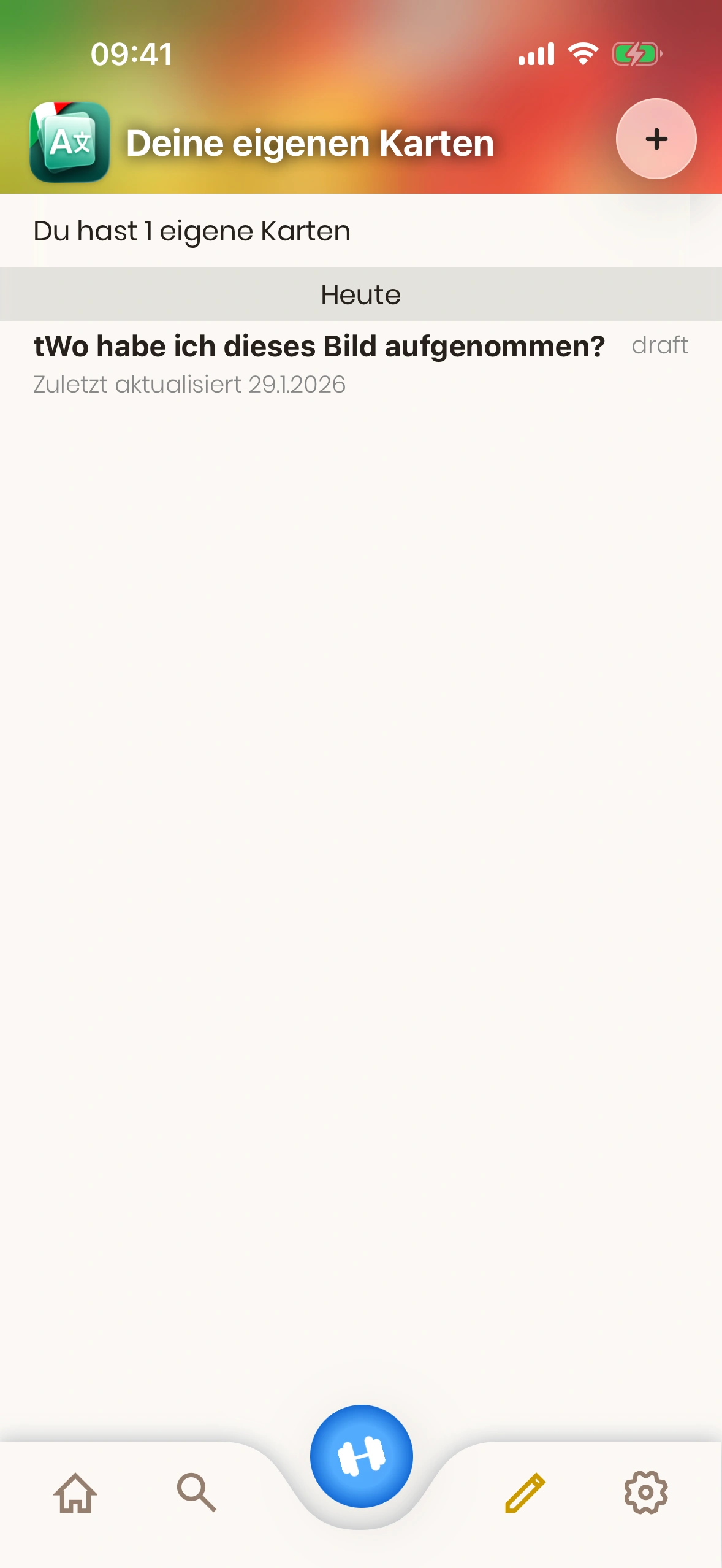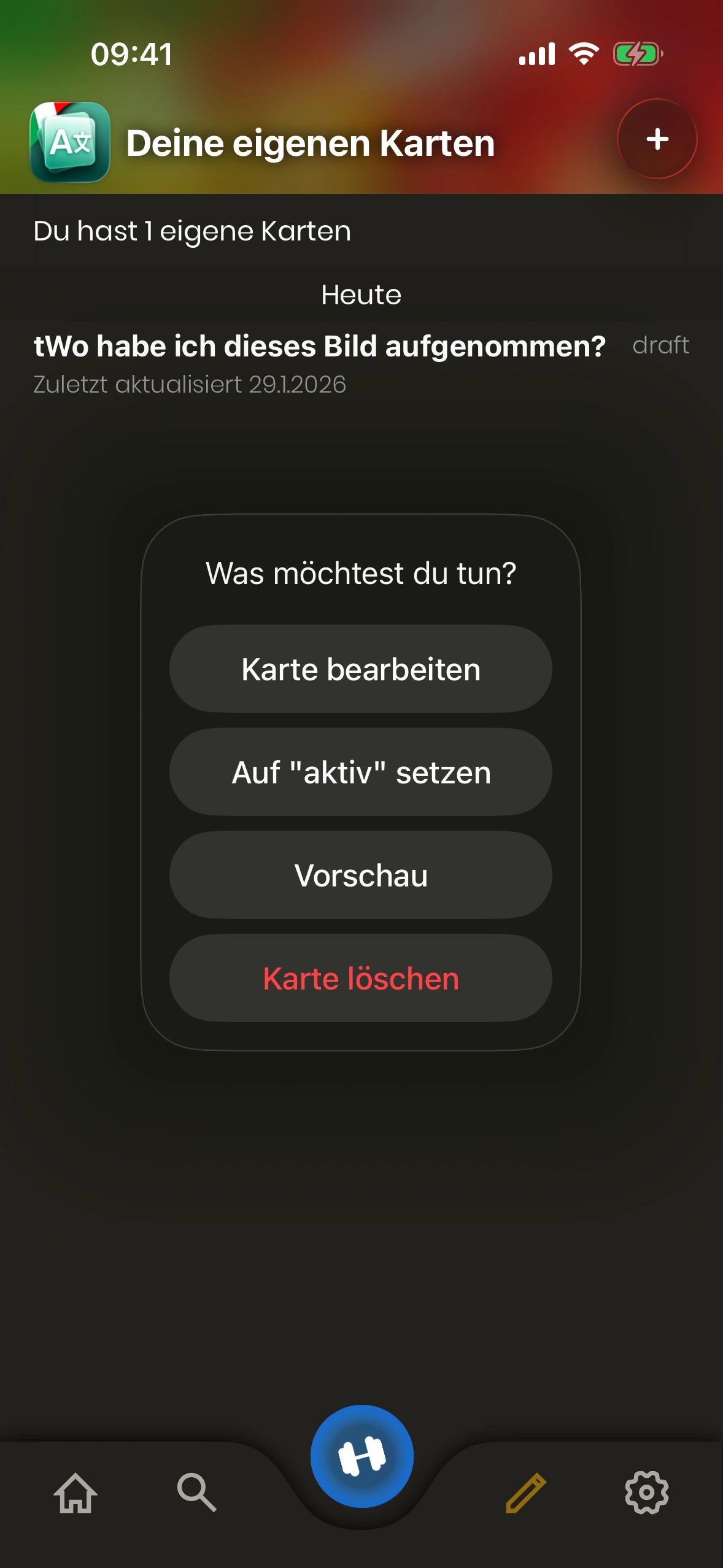 - Kartenstatus: Eine Eigene Karte ist entweder „Entwurf“ oder „Aktiv“. Entwürfe werden beim Lernen nicht gezeigt. Tippe die Karte, um den Status zu ändern.