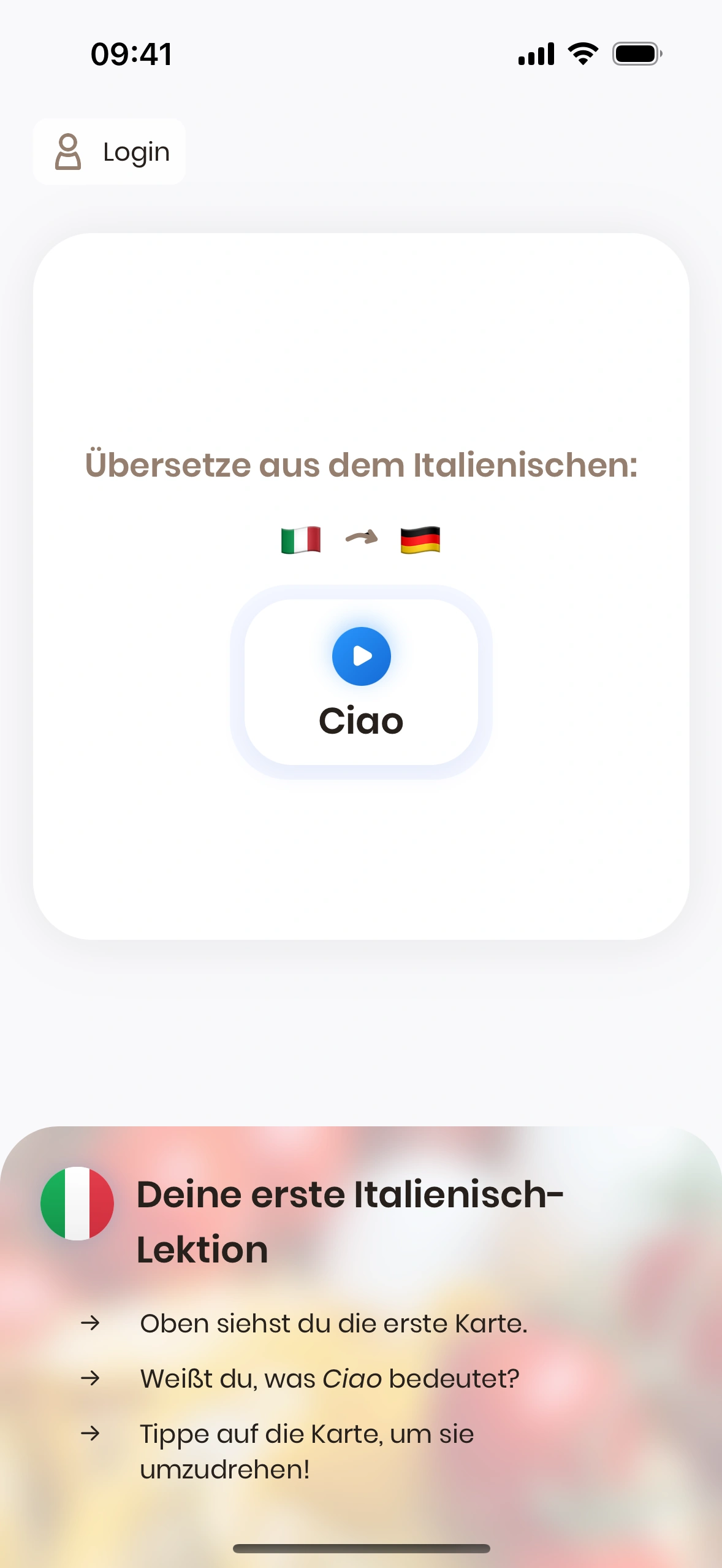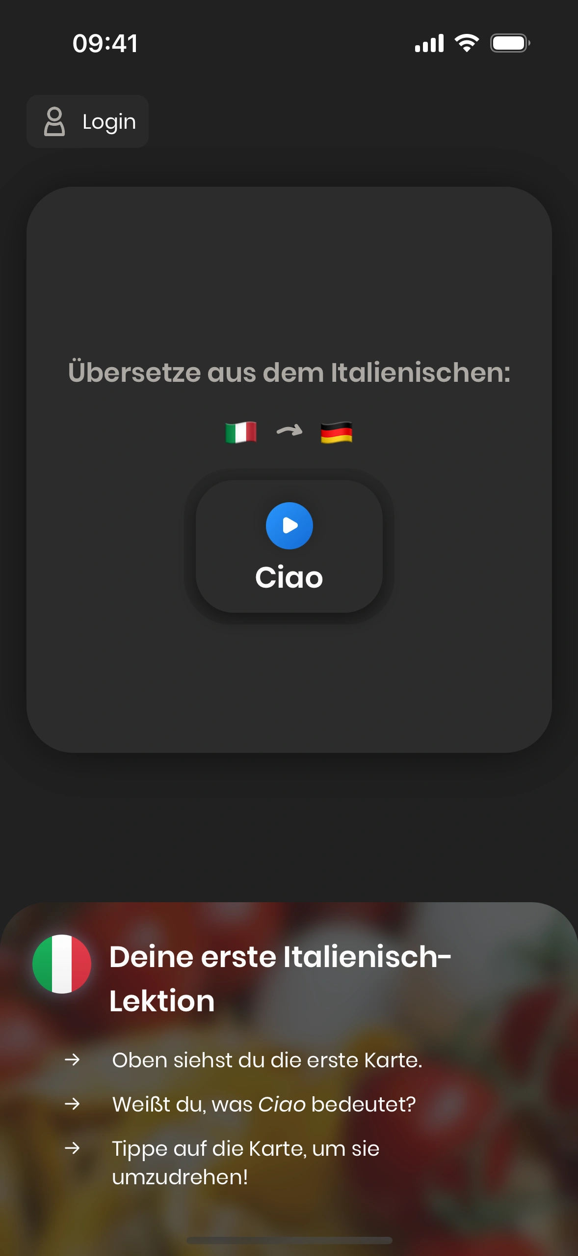 Wenn du Just Italian zum ersten Mal startest, wirst du durch das Tutorial geführt.