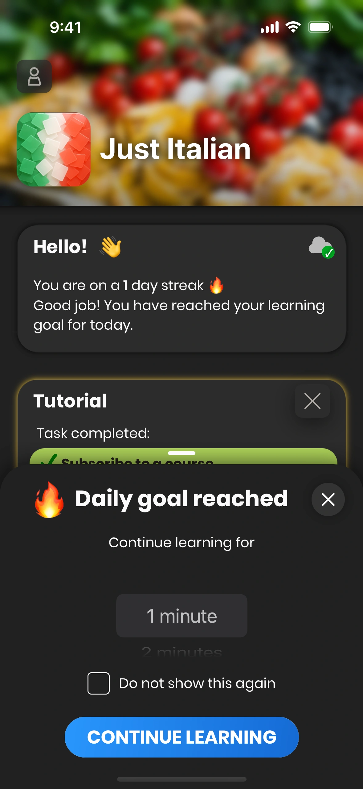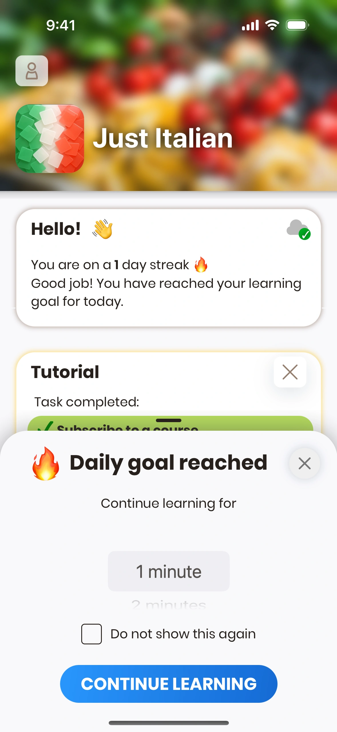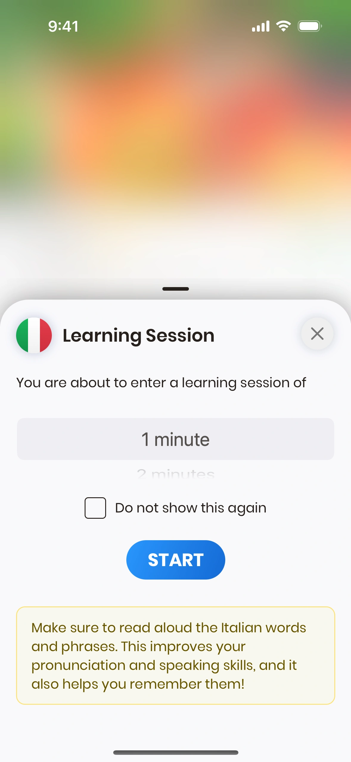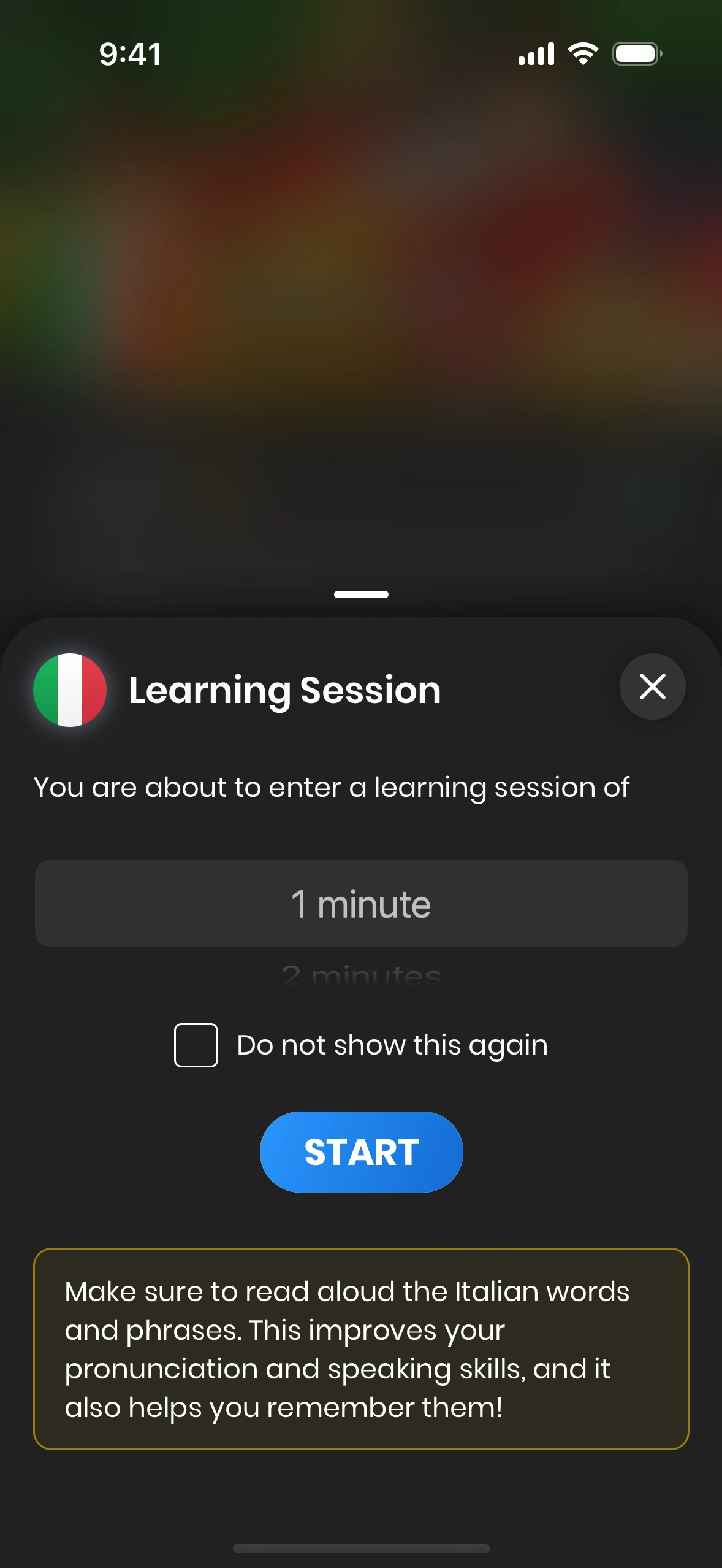 This bottom sheet can be disabled in the settings. If it is disabled, the learning session will start immediately with the default duration.