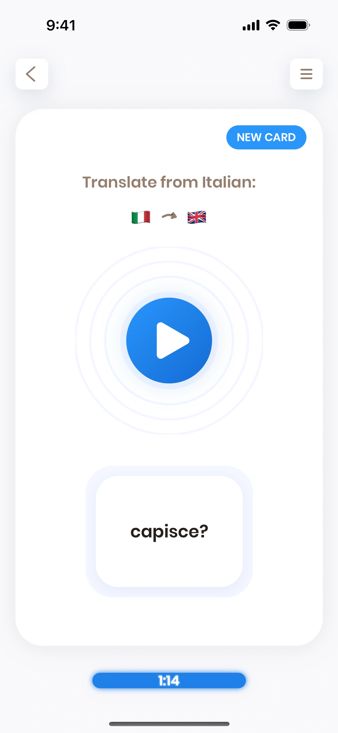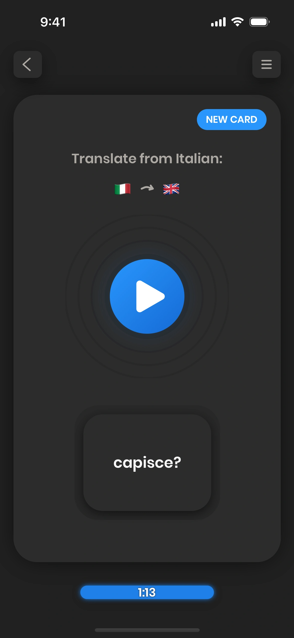 For this reason, the time progress indicator will go orange after a few seconds have gone by. This tells you that you should practice this card more often - which can be achieved by grading this card as hard or too hard and then move on to the next card.