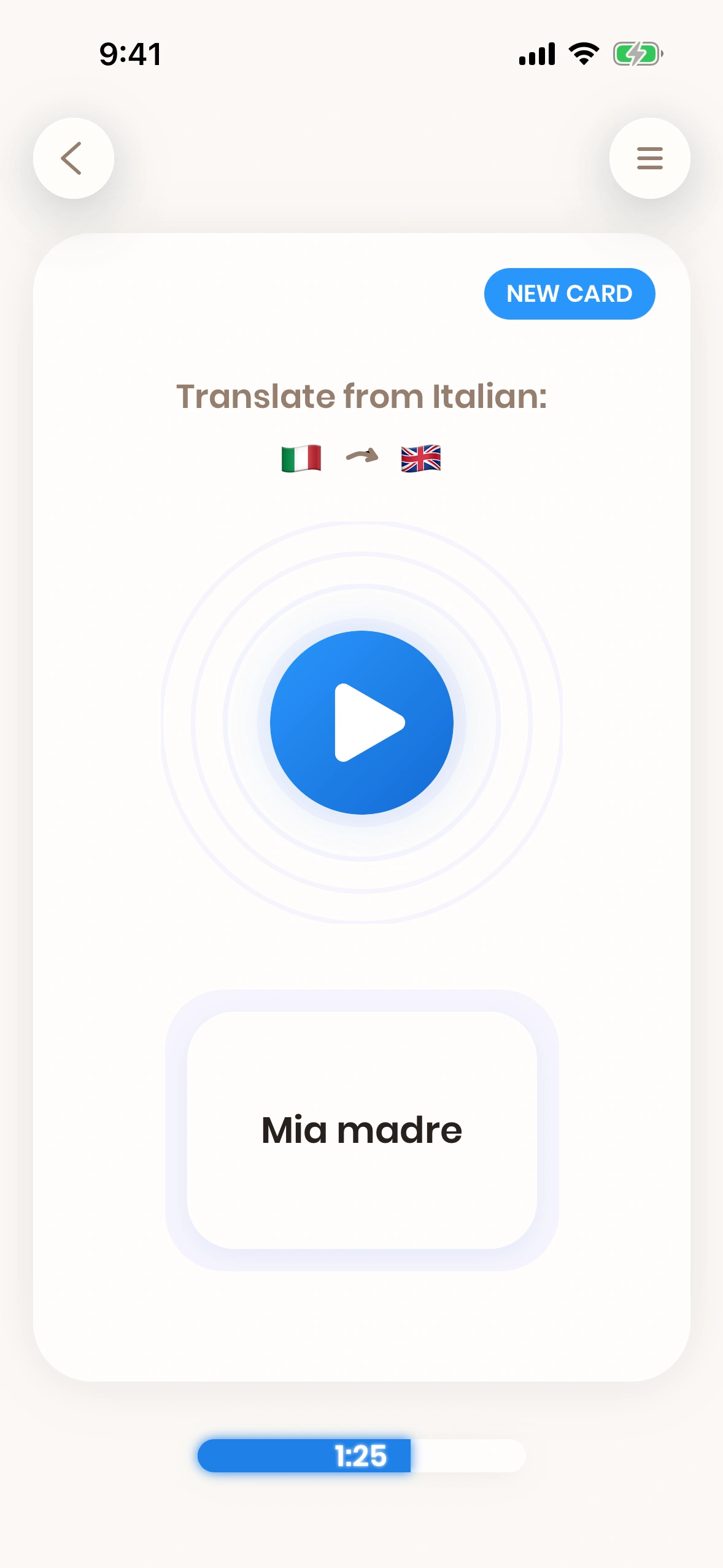 For this reason, the time progress indicator will go orange after a few seconds have gone by. This tells you that you should practice this card more often - which can be achieved by grading this card as hard or too hard and then move on to the next card.