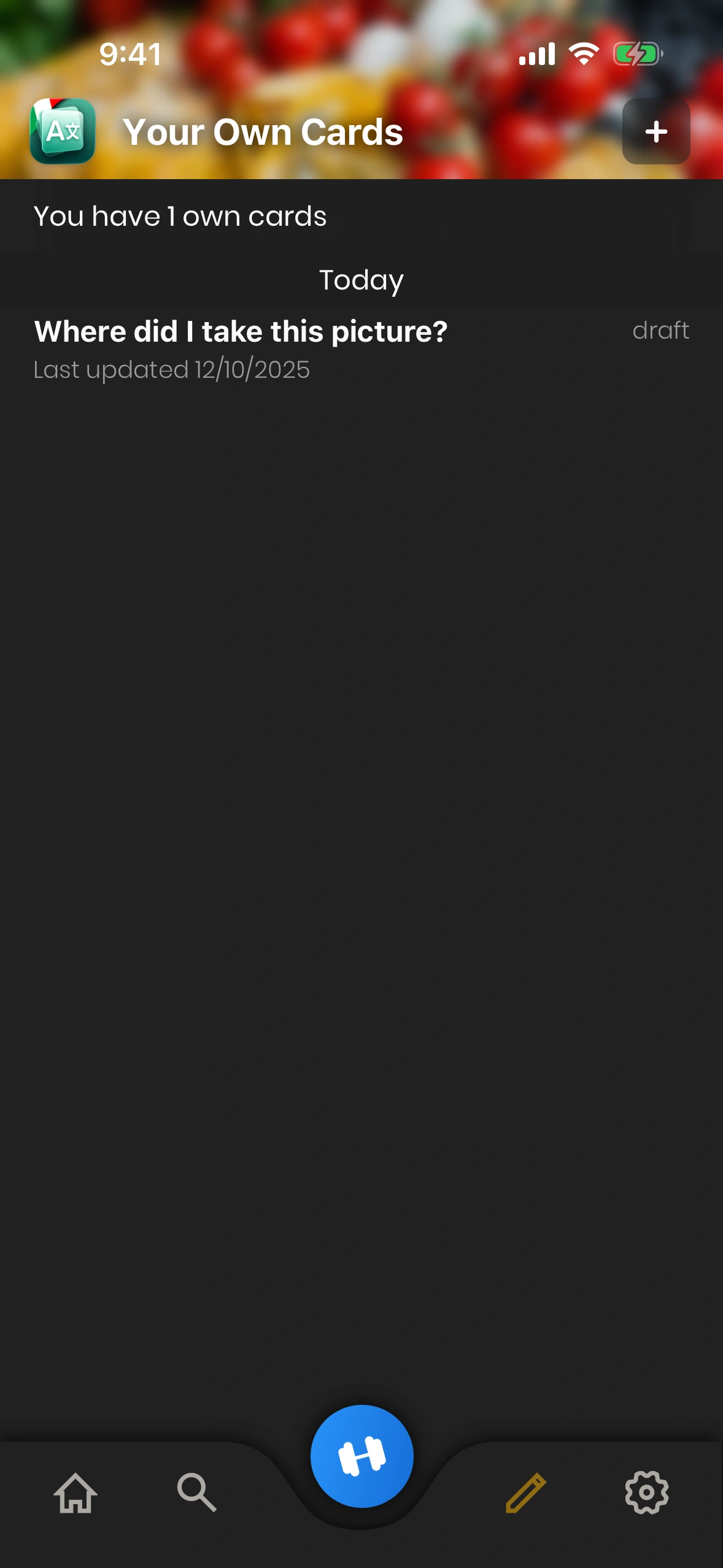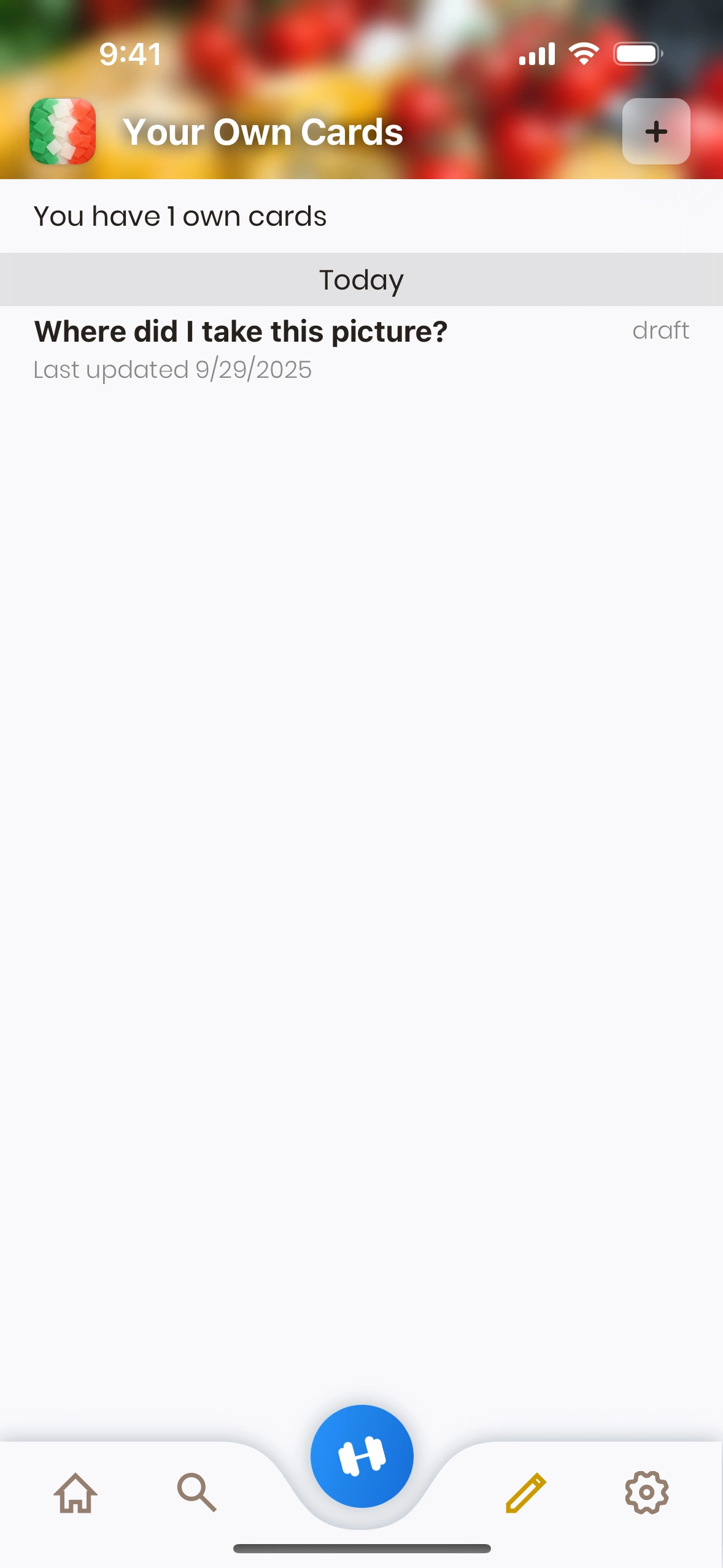 The Own Cards Overview Screen is shown when you tap the pencil symbol in the tab bar at the bottom (1.):
