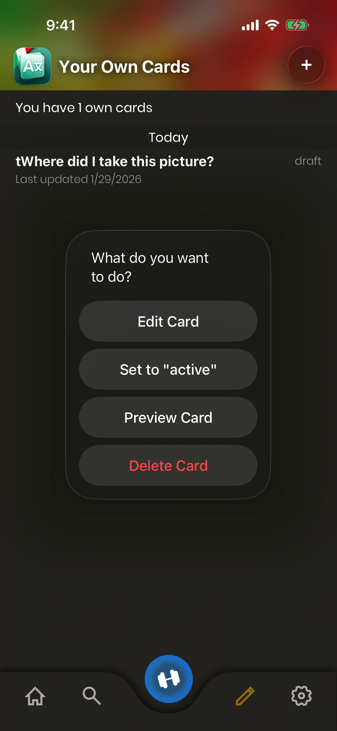 - Card Status: An Own Card is either in "draft" mode or "active". Draft cards are not shown while learning. To change the status of a card, tap it.