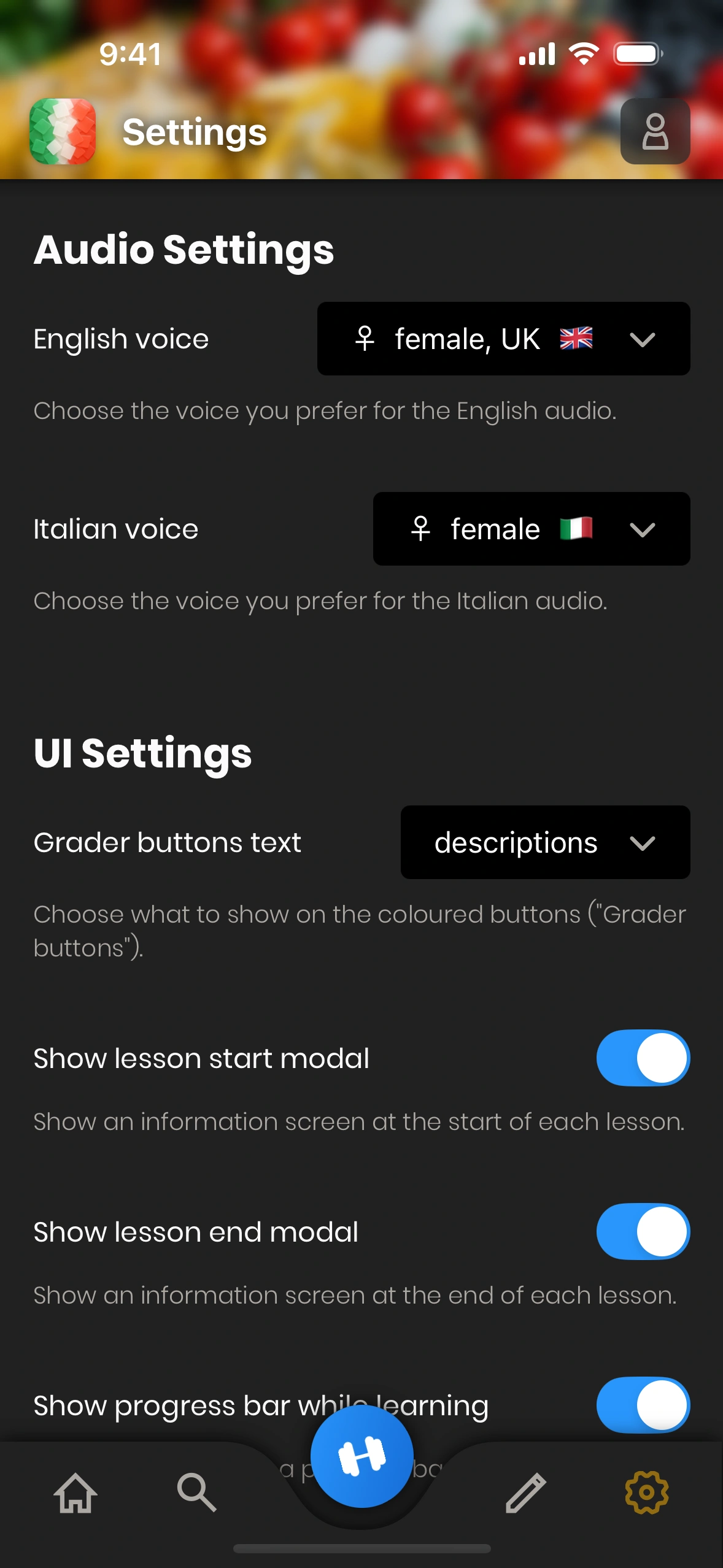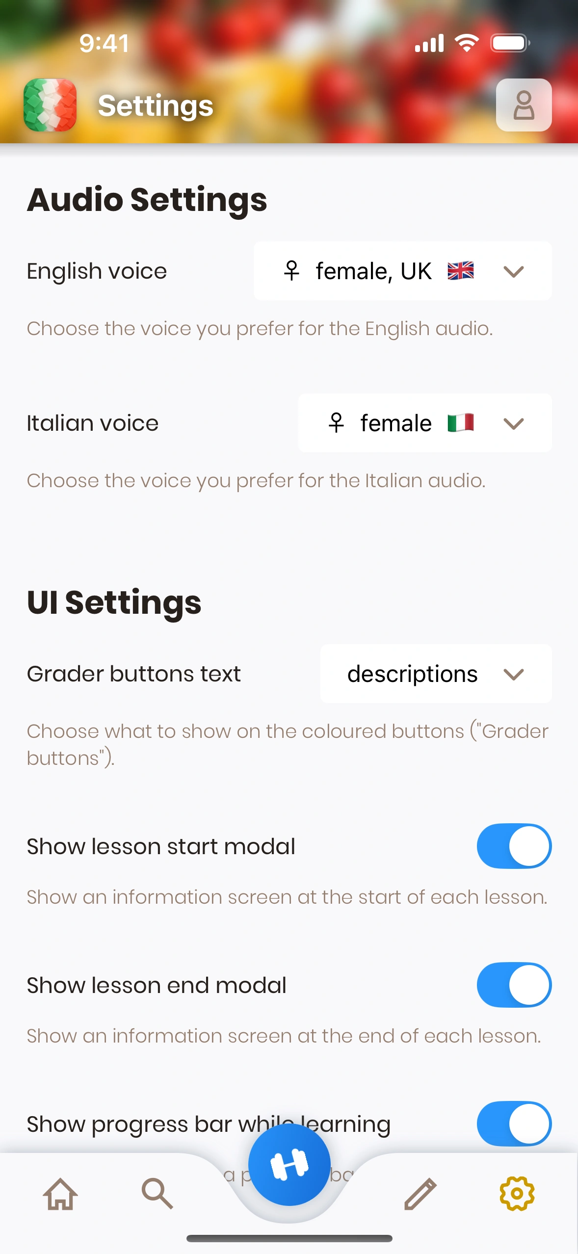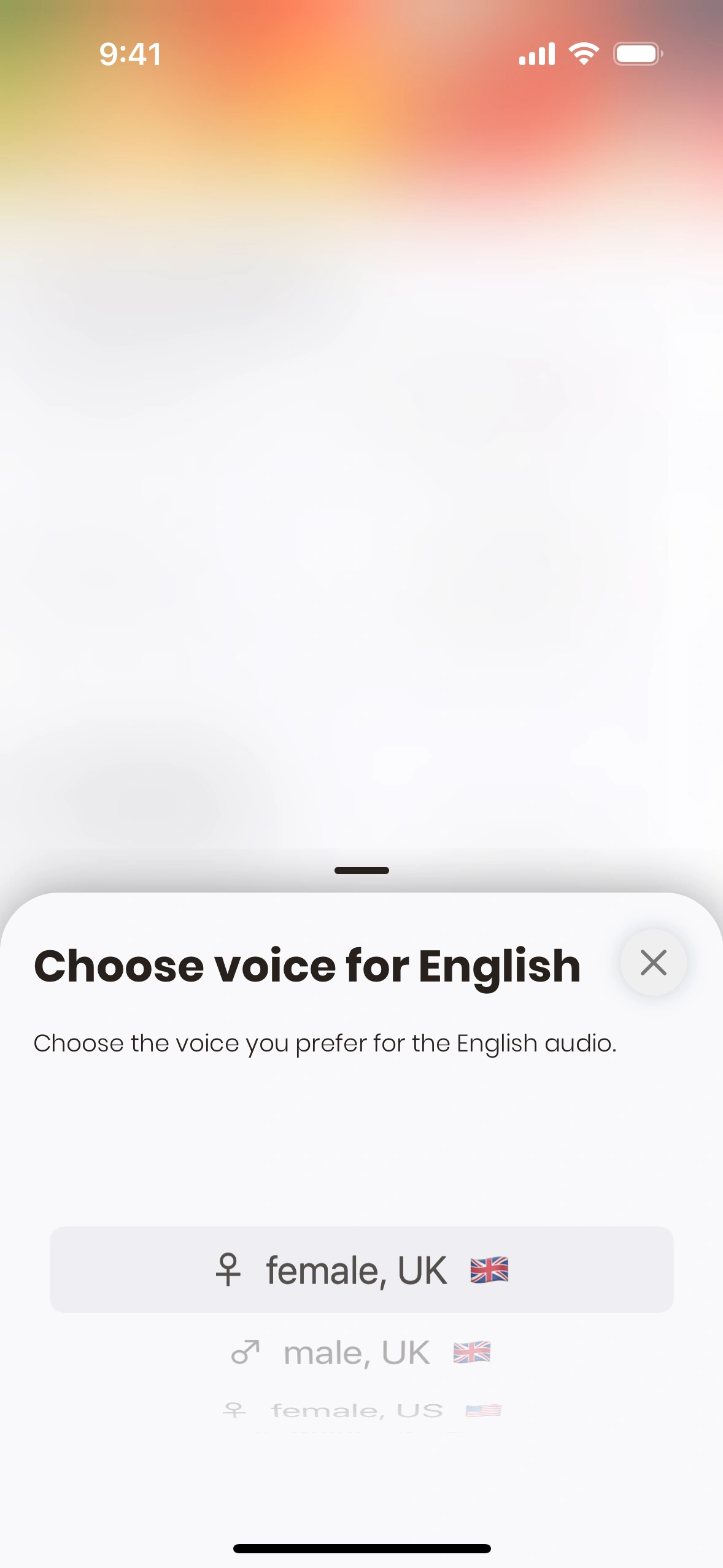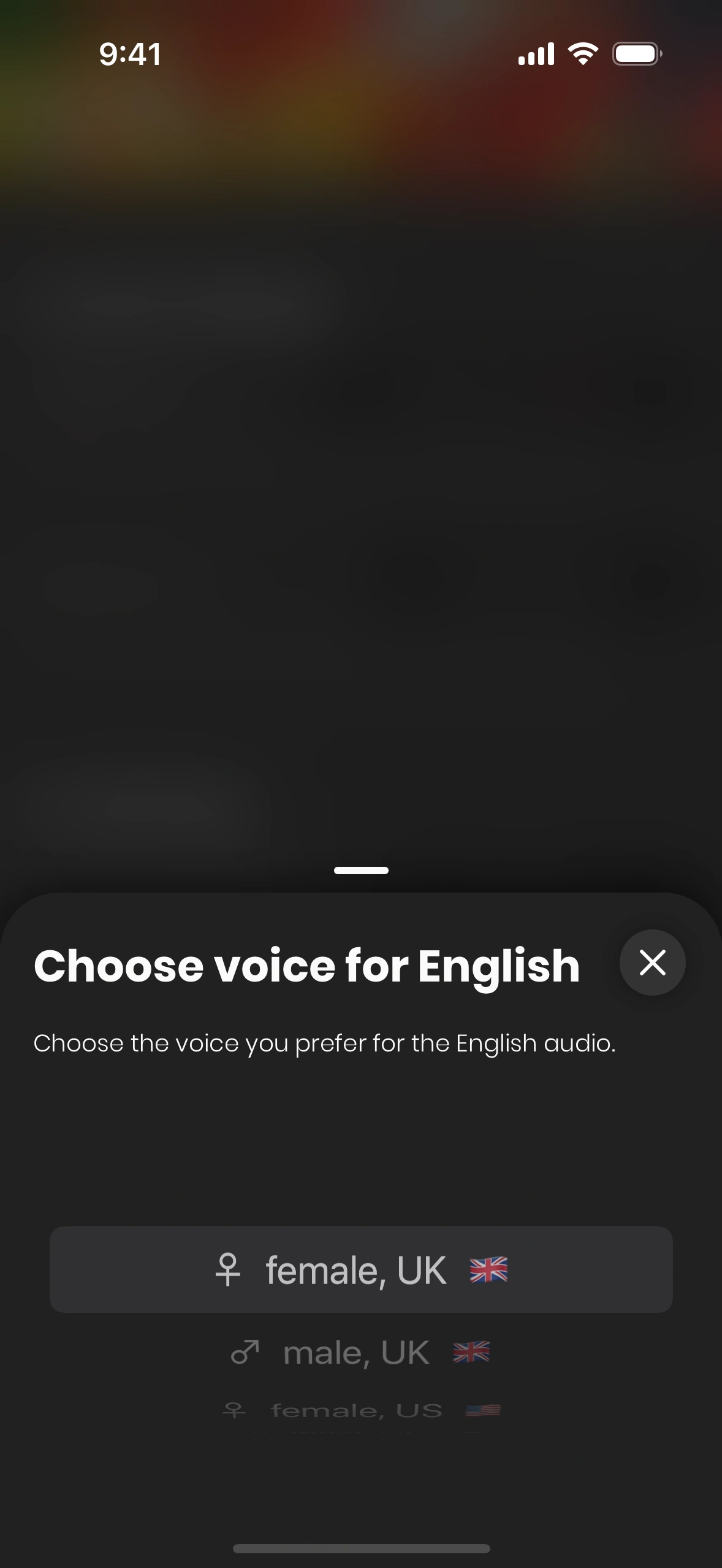 All languages are available in a female and a male voice. In addition, English can be chosen in a British or an American accent.