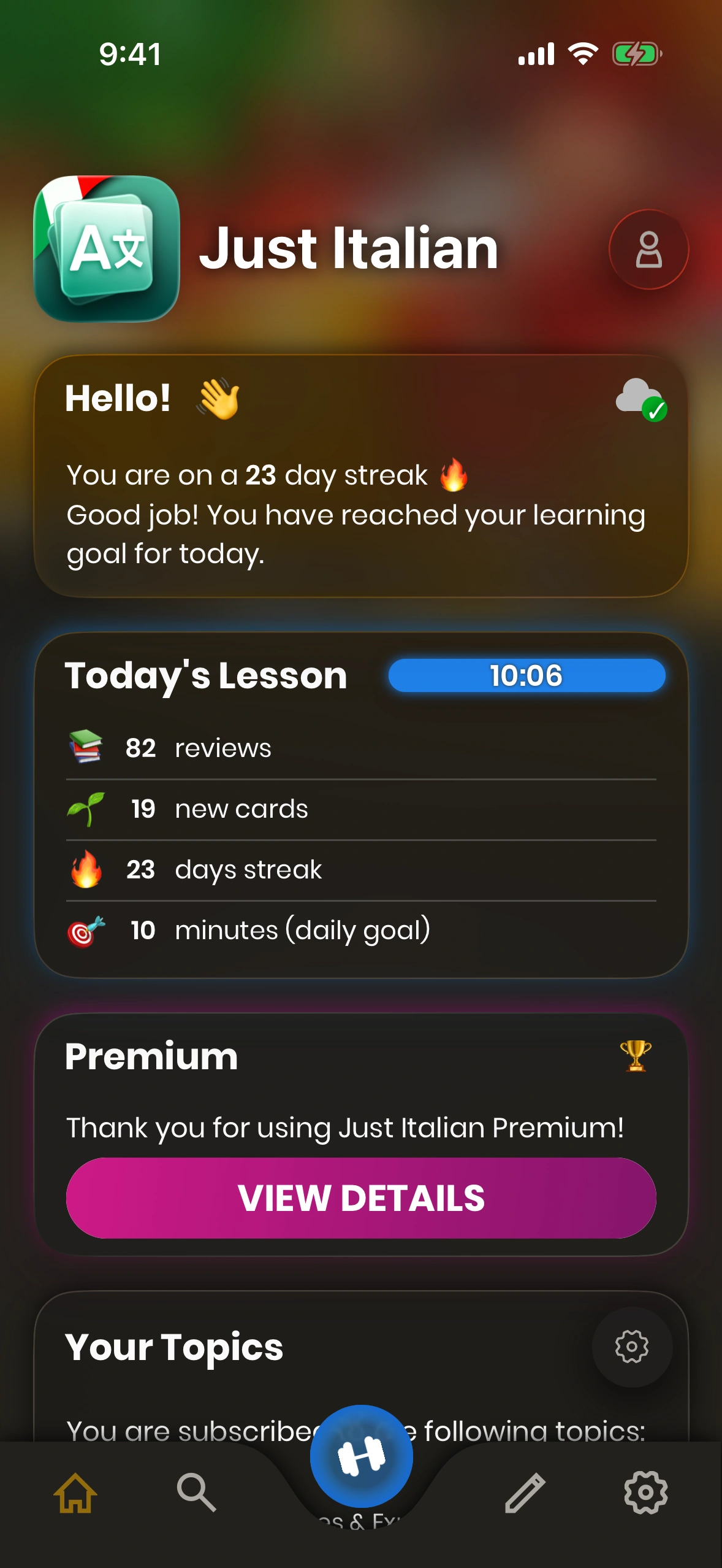 Just Italian lets you create your own cards too - but why not use the +30'000 high-quality cards that come with the app?