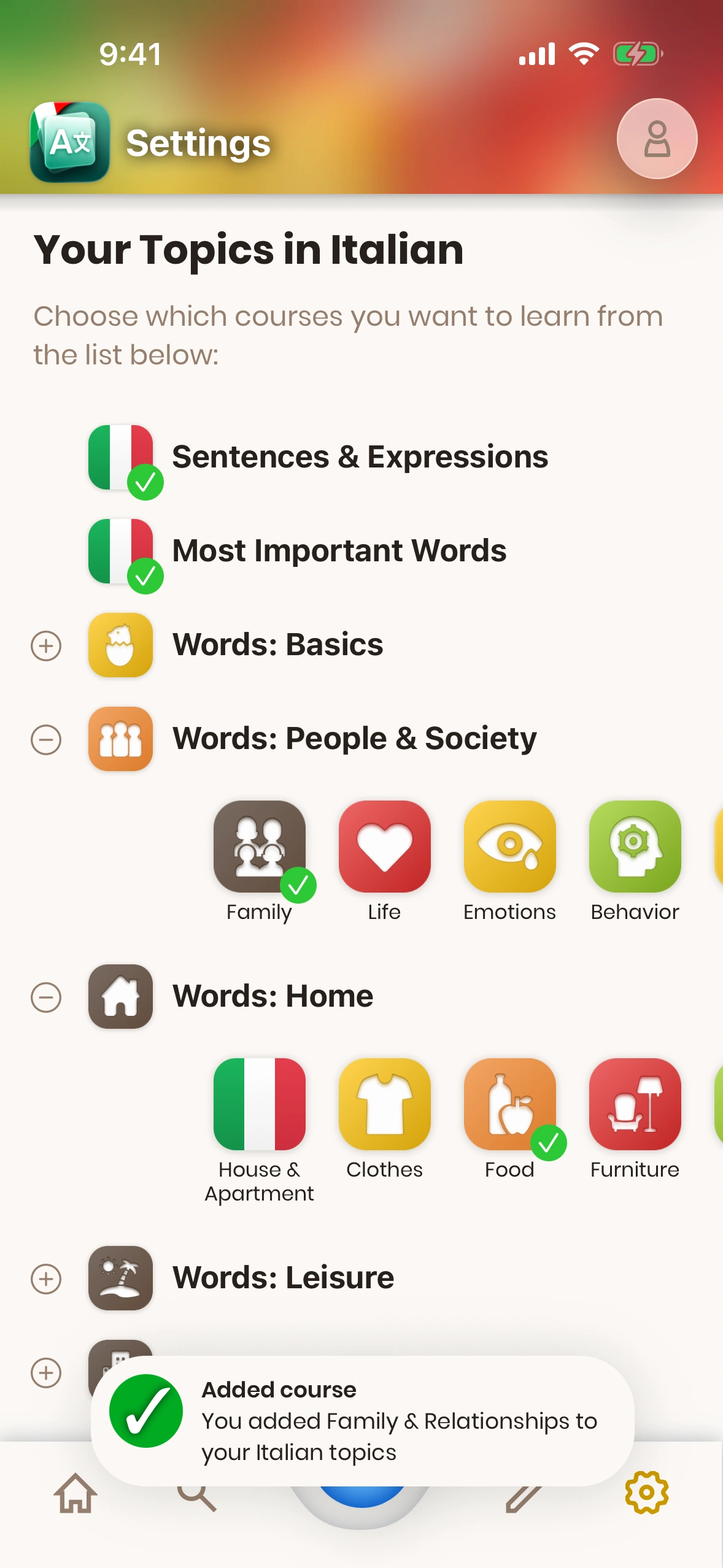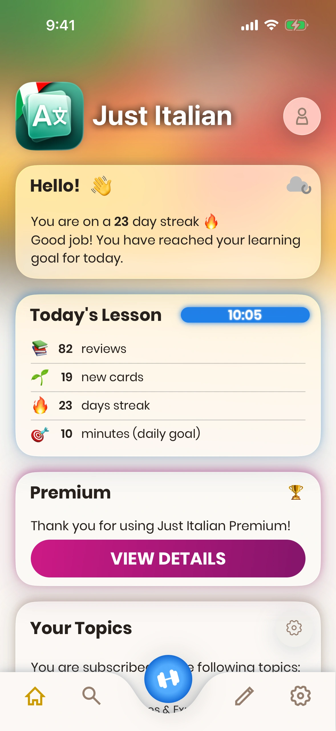 Games and Owls are nice, but if you prefer to make progress, Just Italian is the app for you.