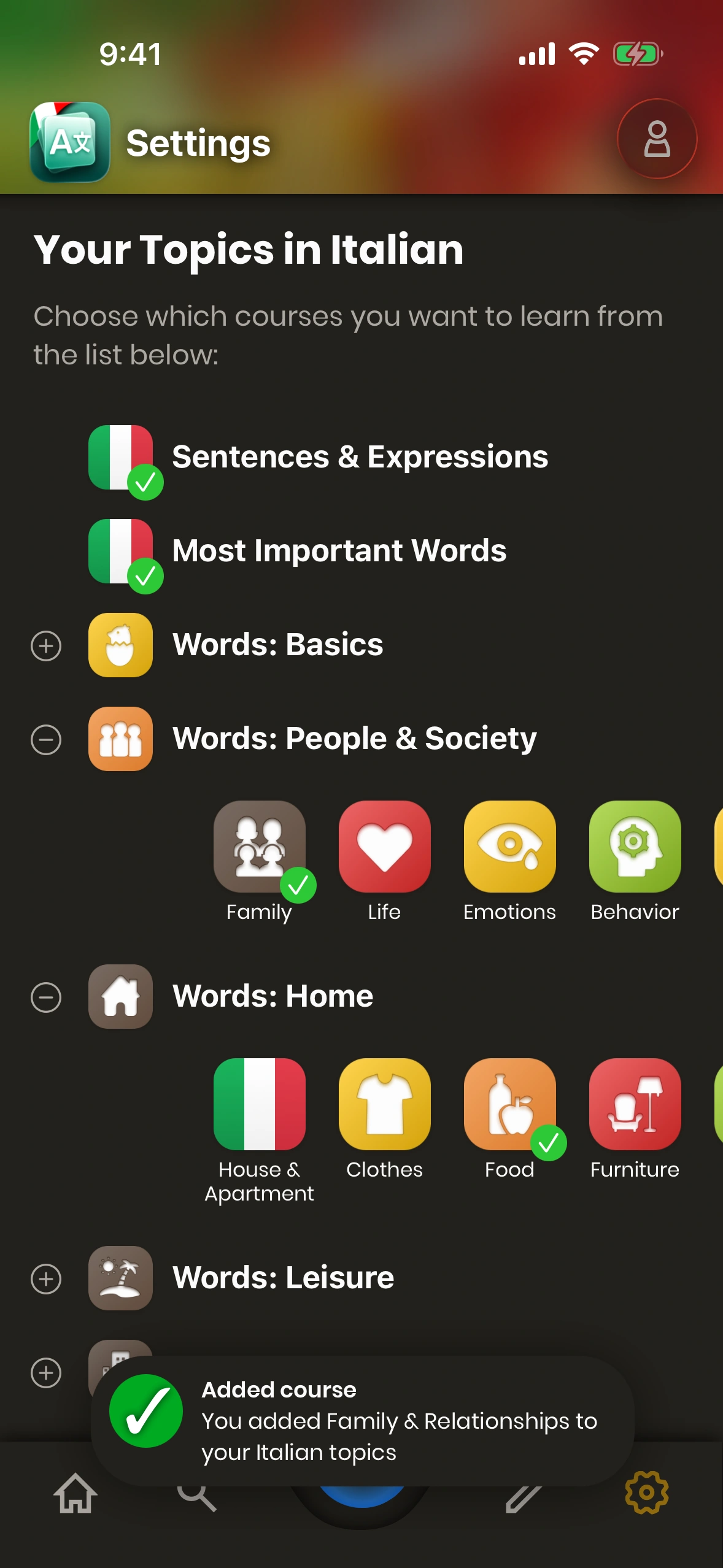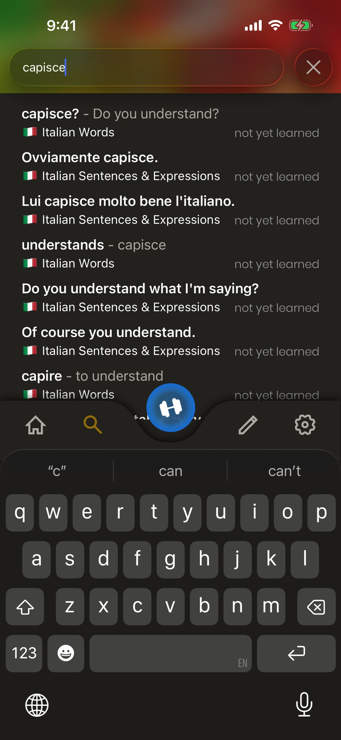Look up a word you don't know, and add it immediately to your learning queue. Just Italian will make sure you will never forget the word.